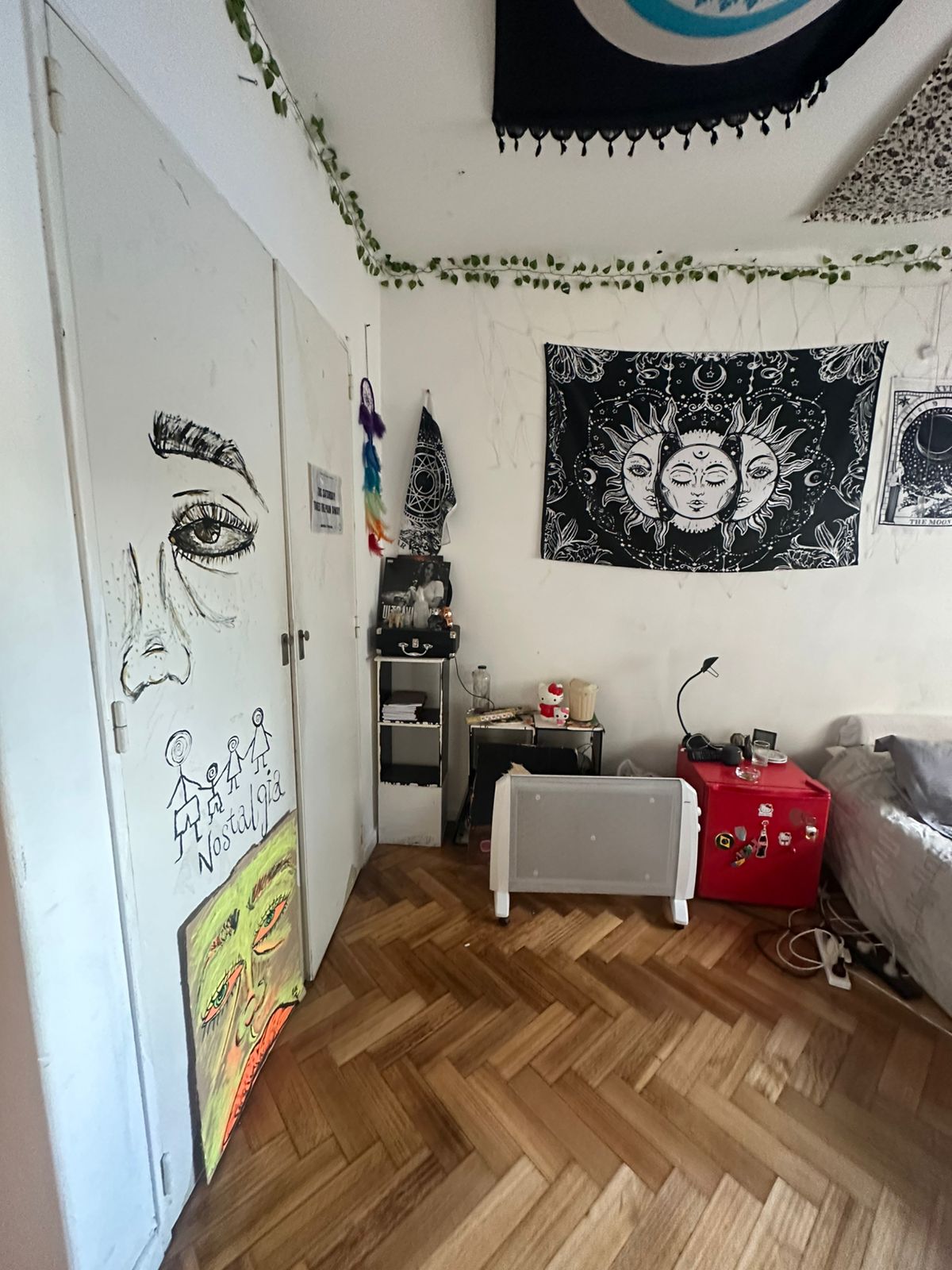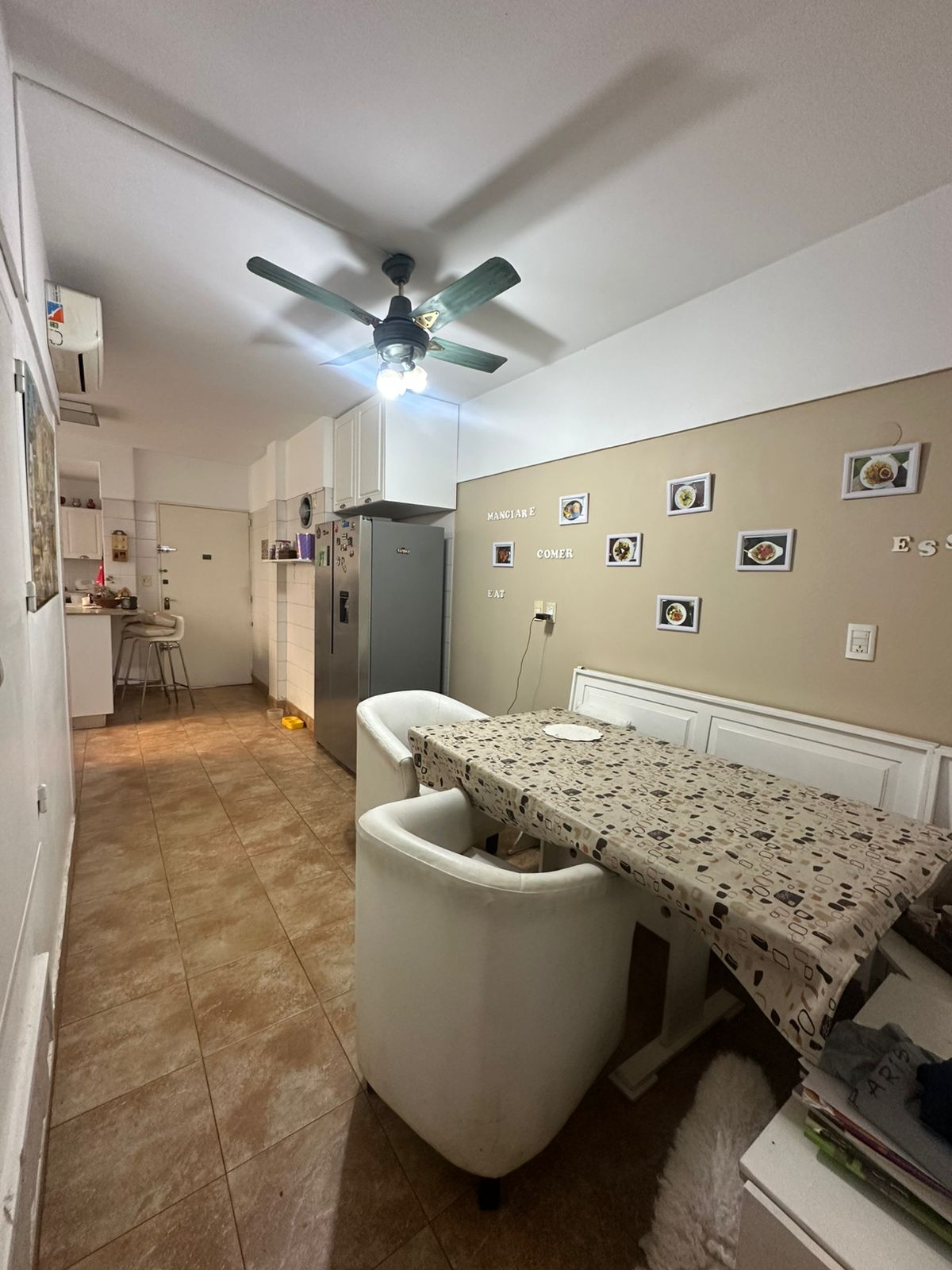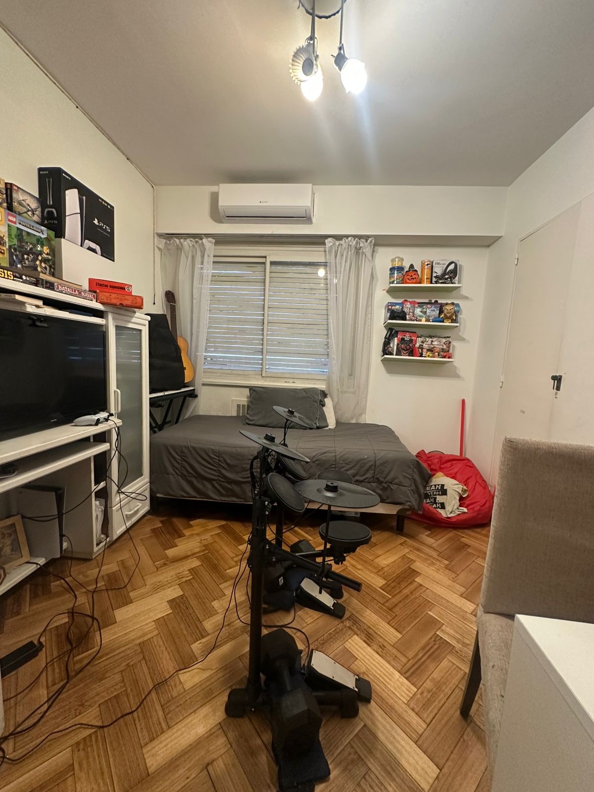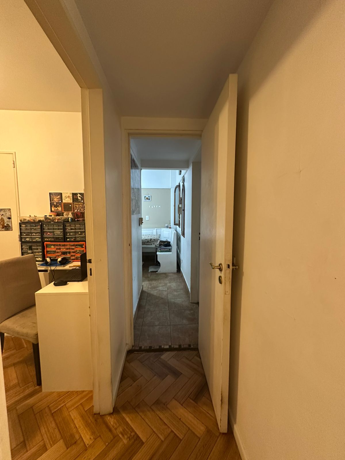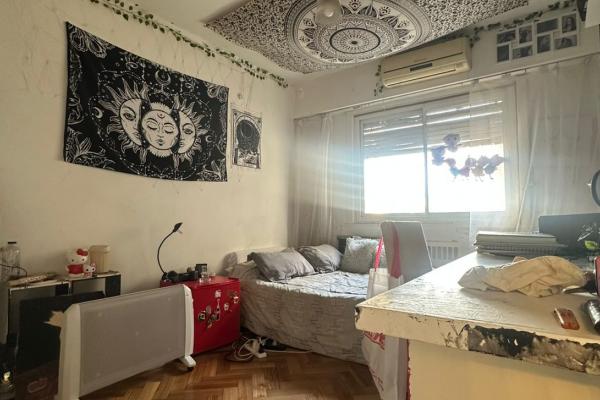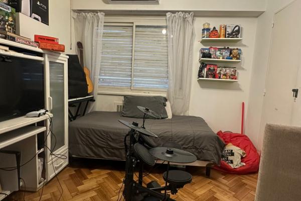 Espacioso living comedor en “L”, con salida al balcón. Pisos de parquet recién pulidos y plastificados, en perfecto estado.